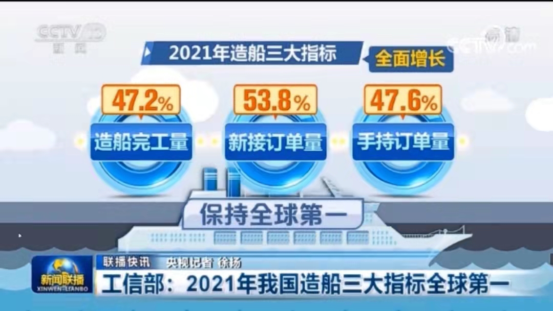 2021年我國造船三大指標(biāo)全面增長 國際市場份額提升保持全球領(lǐng)先